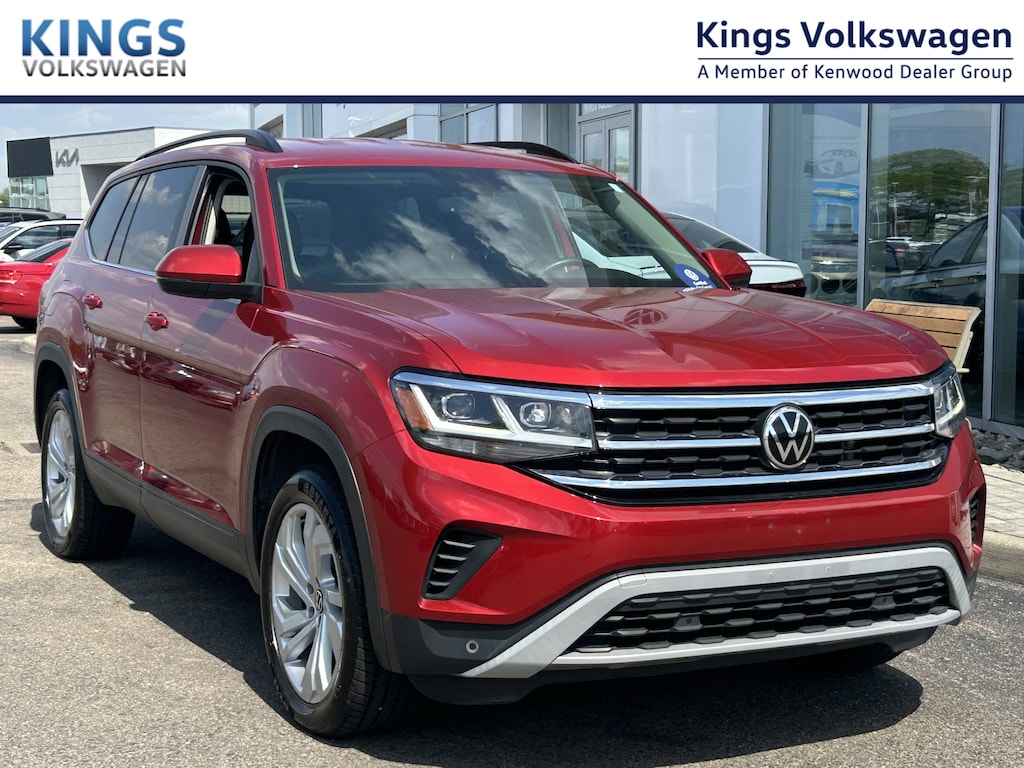 Certified. Aurora Red Metallic 2022 Volkswagen Atlas 2.0T SE w/Technology 2.0L TSI AWD