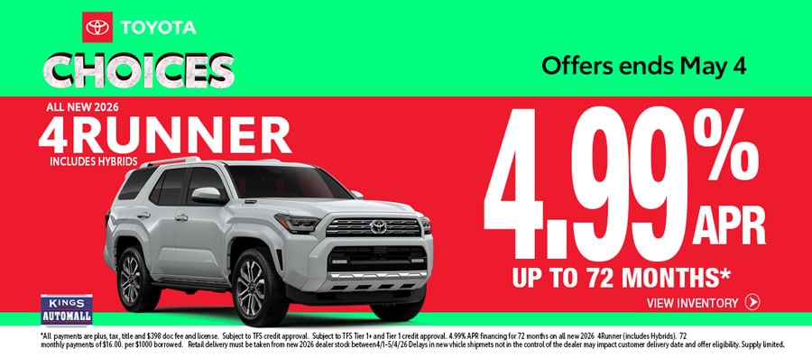 - LOW APR Financing on Select Toyota Models