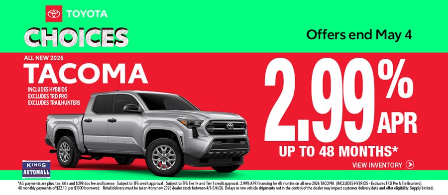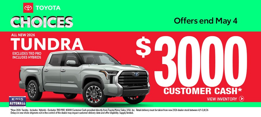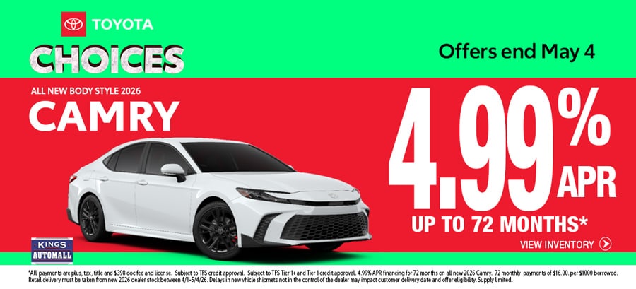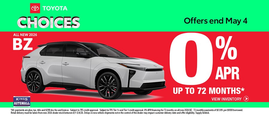 Our Toyota deals in Cincinnati will be updated throughout the sales event. Here are some examples of the 2026 Toyota deals you'll find at Kings Toyota!