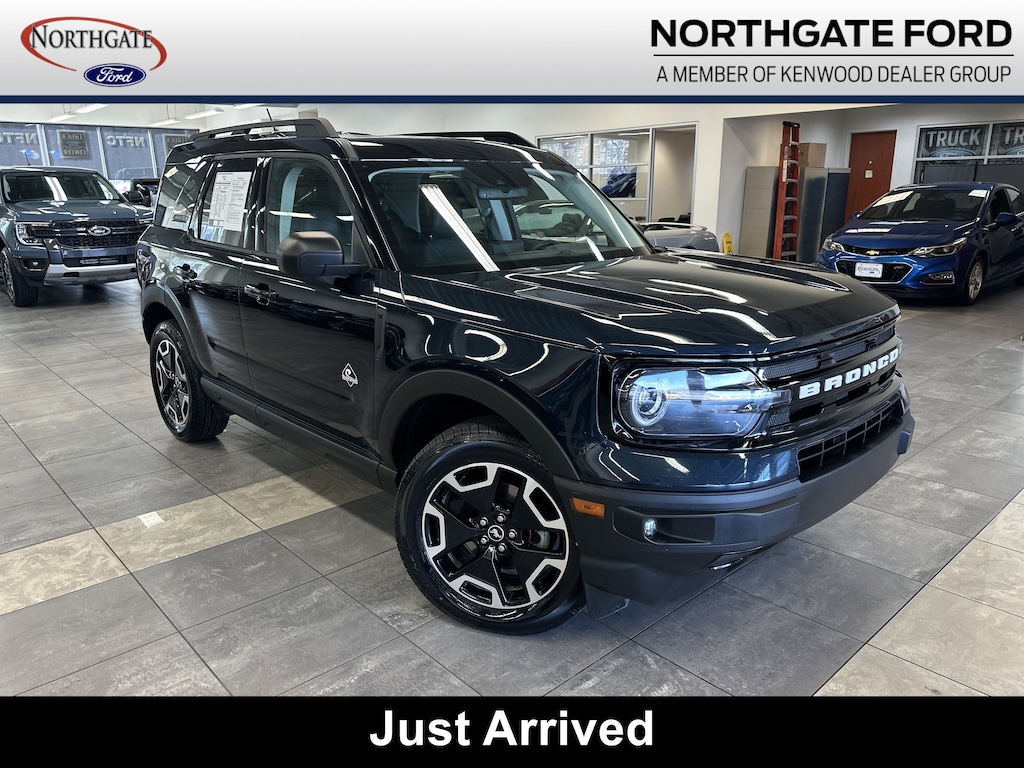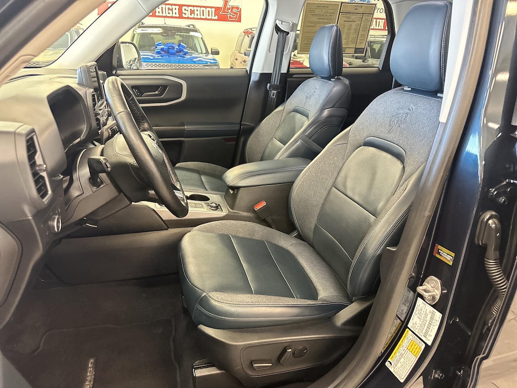 THIS VEHICLE ALSO HAS THE FOLLOWING OPTIONS AND FEATURES:Equipment Group 300A, Bronco Sport Outer Banks, 4WD, Navy Pier w/Leather Trimmed Heated Sport Contour Bucket Seats, AM/FM radio: SiriusXM, Auto High-beam Headlights, Electronic Stability Control, Exterior Parking Camera Rear, Leather Trimmed Heated Sport Contour Bucket Seats, SiriusXM Radio, SYNC 3 Communications & Entertainment System, Wheels: 18" Ebony Black-Painted Aluminum, 3.80 Axle Ratio, 4-Wheel Disc Brakes, 6 Speakers, ABS brakes, Air Conditioning, Alloy wheels, AM/FM Stereo, Auto-dimming Rear-View mirror, Automatic temperature control, Brake assist, Cargo Management System, Cargo Mat, Compass, Delay-off headlights, Driver door bin, Driver vanity mirror, Dual front impact airbags, Dual front side impact airbags, Emergency communication system: SYNC 3 911 Assist, Four wheel independent suspension, Front & Rear Floor Liners, Front anti-roll bar, Front Bucket Seats, Front Center Armrest, Front dual zone A/C, Front fog lights, Front reading lights, Fully automatic headlights, Heated door mirrors, Heated front seats, Heated steering wheel, Illuminated entry, Knee airbag, Low tire pressure warning, Occupant sensing airbag, Outside temperature display, Overhead airbag, Overhead console, Panic alarm, Passenger door bin, Passenger vanity mirror, Power door mirrors, Power driver seat, Power passenger seat, Power steering, Power windows, Radio data system, Rain sensing wipers, Rear anti-roll bar, Rear Parking Sensors, Rear reading lights, Rear seat center armrest, Rear window defroster, Rear window wiper, Remote keyless entry, Roof rack: rails only, Security system, Speed control, Speed-sensing steering, Speed-Sensitive Wipers, Split folding rear seat, Steering wheel mounted audio controls, SYNC 3/Apple CarPlay/Android Auto, Tachometer, Telescoping steering wheel, Tilt steering wheel, Traction control, Trip computer, and Variably intermittent wipers.